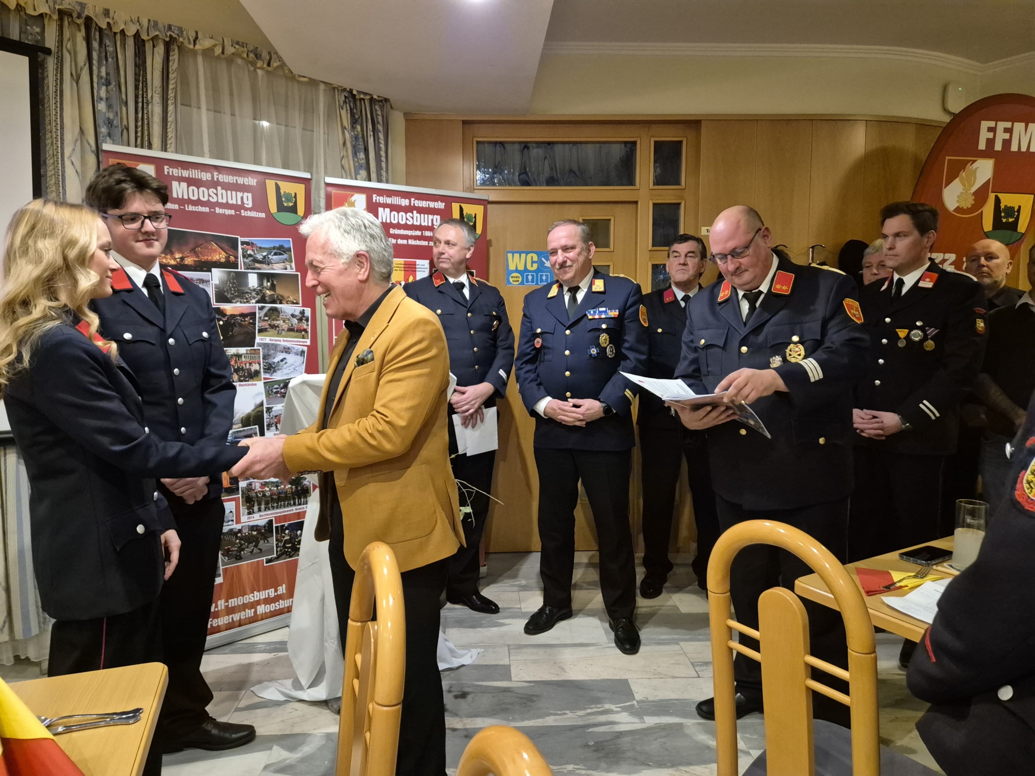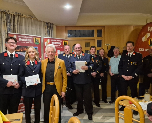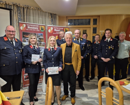 Der Bewerbsgruppe Moosburg 9 wurde vom Kommandanten und den Ehrengästen zu den Teilnahmen an den Cup-Bewerben und den Bezirksleistungsbewerben gratuliert.