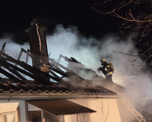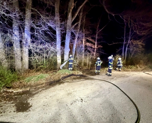 Umgehend wurde mit einem Innen- sowie Außenangriff unter Einsatz der Tanklöschfahrzeuge begonnen, um eine weitere Ausbreitung der Flammen zu verhindern.