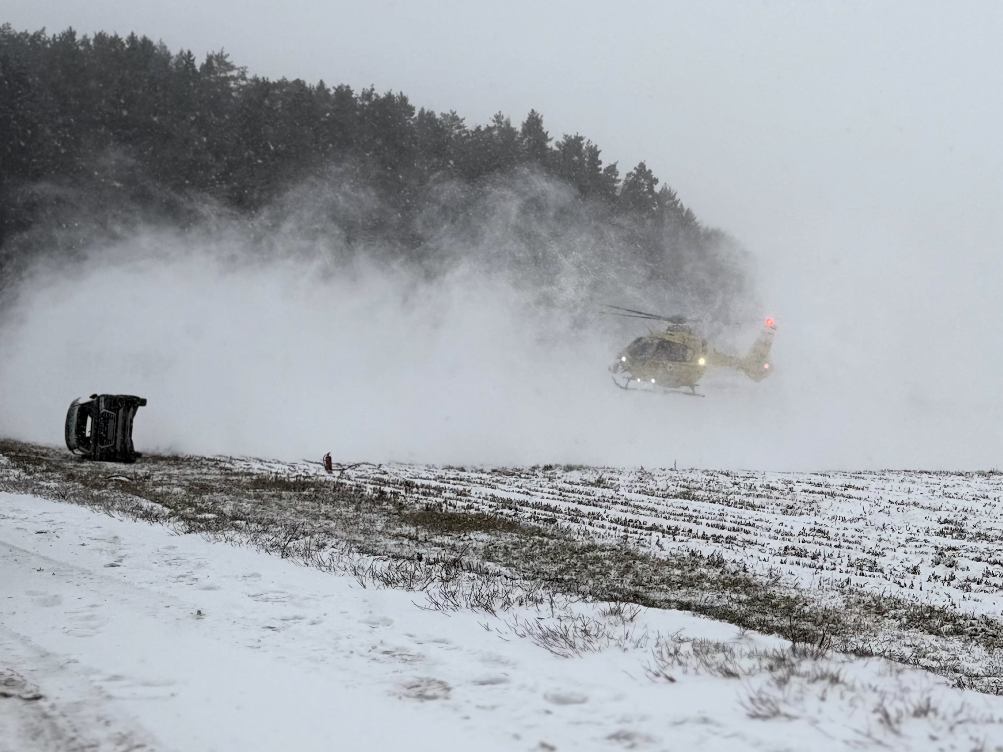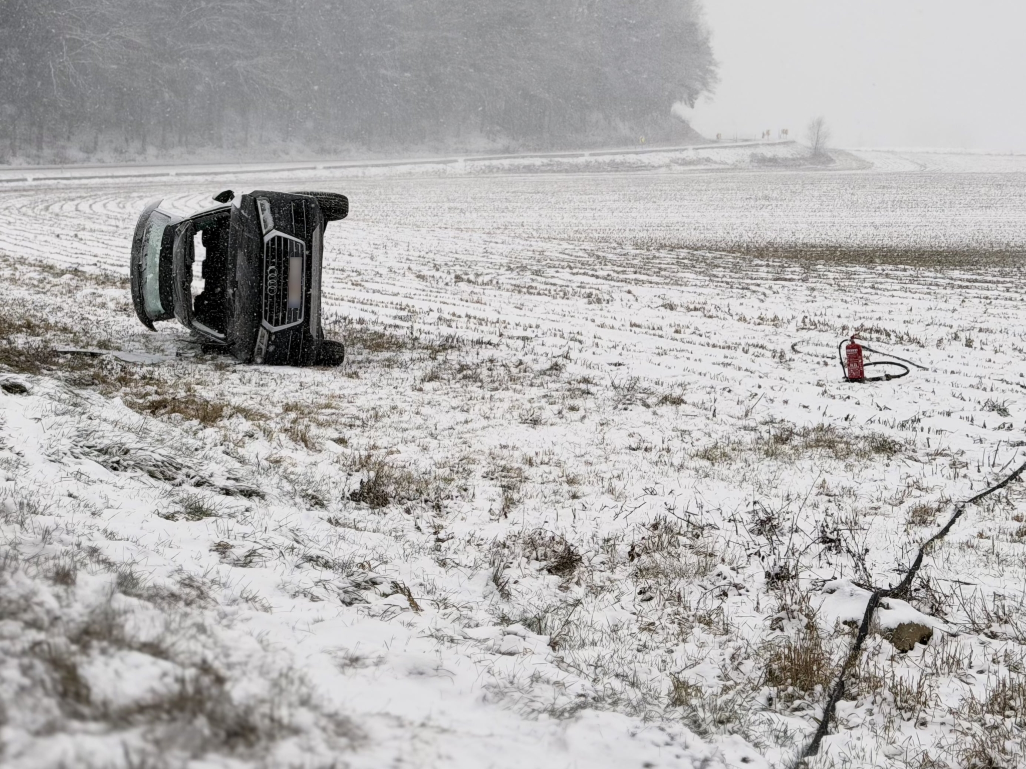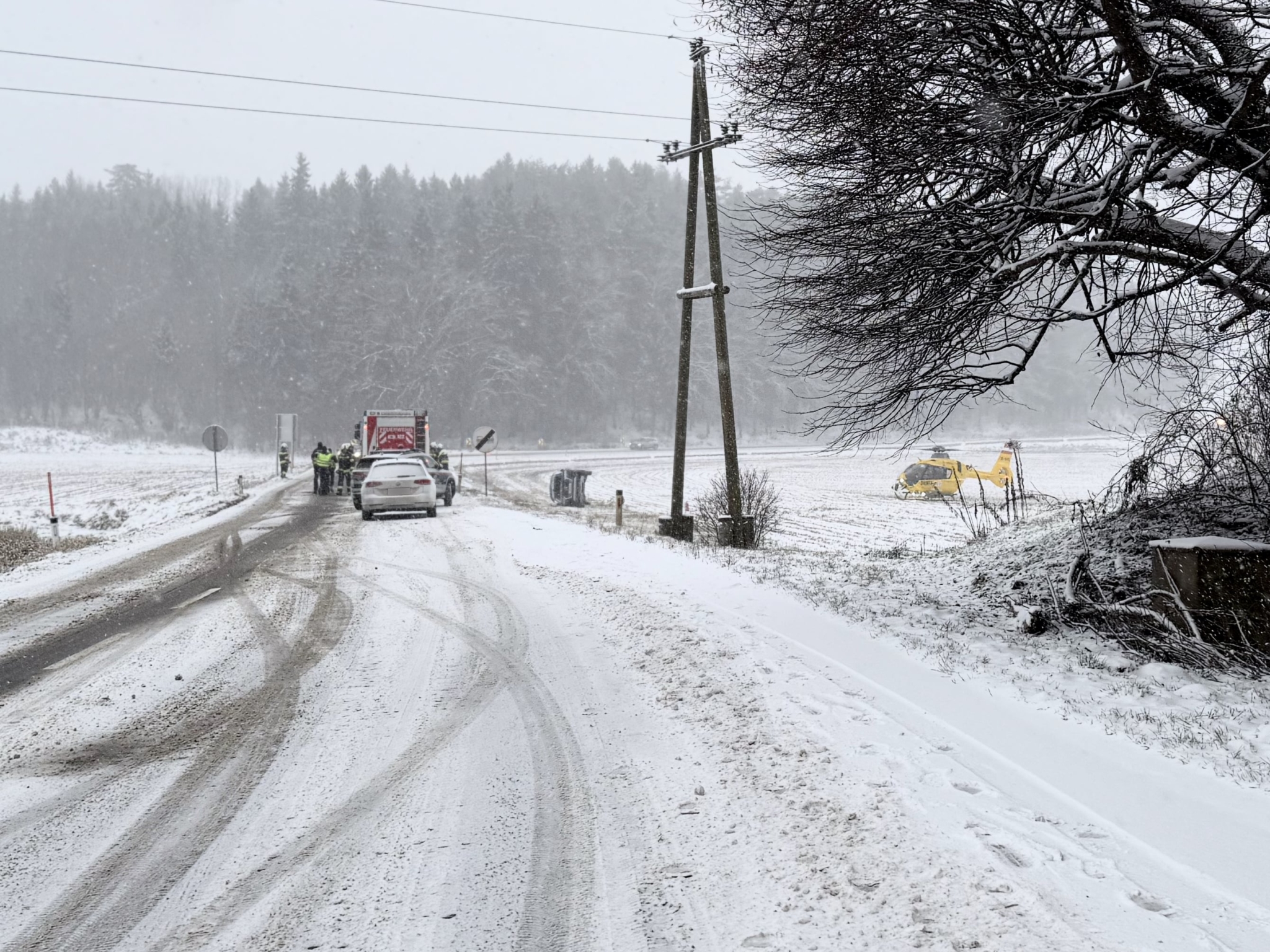 Kurz nach der Ortschaft Gundersdorf kam ein PKW auf der schneebedeckten Fahrbahn von der Straße ab, überschlug sich und blieb im angrenzenden Acker liegen. Beim Eintreffen der Feuerwehr waren glücklicherweise keine Personen mehr im Fahrzeug eingeklemmt. Die Fahrzeuginsassen konnten sich selbstständig aus dem Fahrzeug befreien. Sie wurden anschließend vom Roten Kreuz versorgt und ins Krankenhaus gebracht. Das Unfallfahrzeug wurde von einem privaten Abschleppunternehmen abtransportiert. Für die Dauer der Einsatzarbeiten war die Straße teilweise gesperrt, eine örtliche Umleitung wurde eingerichtet.