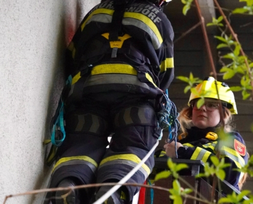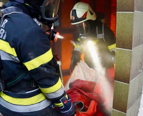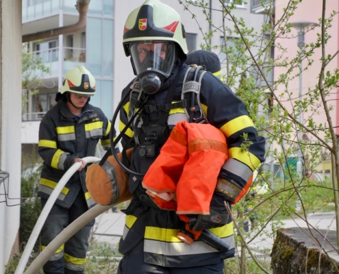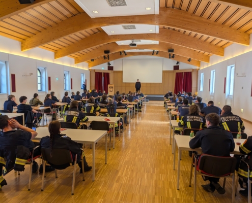 Mit insgesamt 5 Atemschutztrupps konnten alle Personen erfolgreich gerettet und der Brand gelöscht werden. Insgesamt nahmen knapp 90 Kamerad:innen mit 11 Fahrzeugen an der Übung teil.