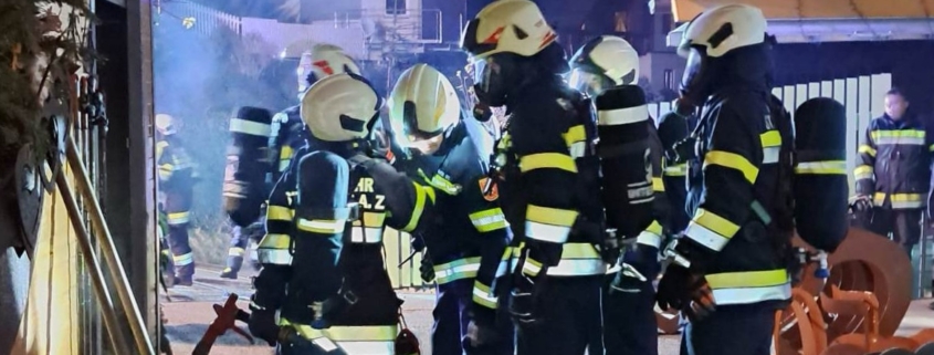 Bei der Ankunft konnte vom Einsatzleiter der FF St. Thomas festgestellt werden, dass es sich um einen Schwelbrand im Bereich des Carports, beziehungsweise eines Abstellraumes handelte. Beißender Geruch und eine starke Rauchentwicklung waren bereits bei der Anfahrt wahrnehmbar. Der Hauseigentümer bemerkte den beißenden Geruch, hielt Nachschau und alarmierte darauf hin unverzüglich den Feuerwehr-Notruf. Diesem Umstand und auch dem raschen Einsatz beider eingesetzten Feuerwehren ist es zu verdanken, dass sich dieser Brand nicht in Richtung des Wohnhauses ausbreitete. Erschwerend für die Feuerwehr kam hinzu, dass eine PV-Anlage mitsamt des Speichersystems direkt vom Brandgeschehen betroffen war. Zum Zeitpunkt des Brandausbruchs waren 6 Erwachsene und ein Kleinkind im Wohnhaus. Das Baby wurde selbstständig ins ELKI Klagenfurt zu einer vorsorglichen Kontrolle gebracht, die zum Glück die Unversehrtheit des Kindes bestätigte. Die Aufgabe der Feuerwehr bestand primär dahin, die Dachhaut des Carports mechanisch zu öffnen und den Brand von außen mit insgesamt zwei eingesetzten Atemschutztrupps zu bekämpfen. Die Feuerwehren St. Thomas am Zeiselberg und Timenitz standen mit insgesamt 4 Fahrzeugen und 39 Mann im Einsatz, um 01:30 Uhr konnten die letzten Kräfte einrücken.