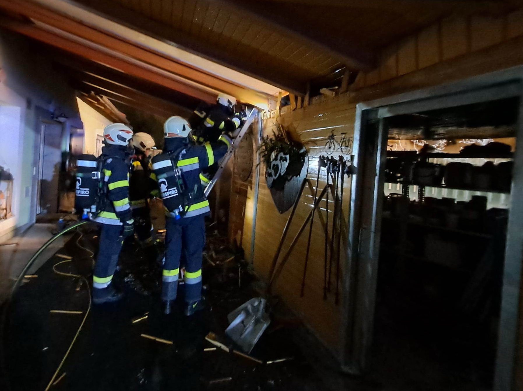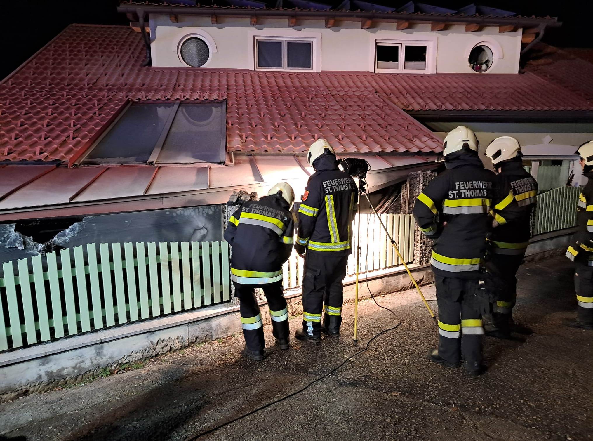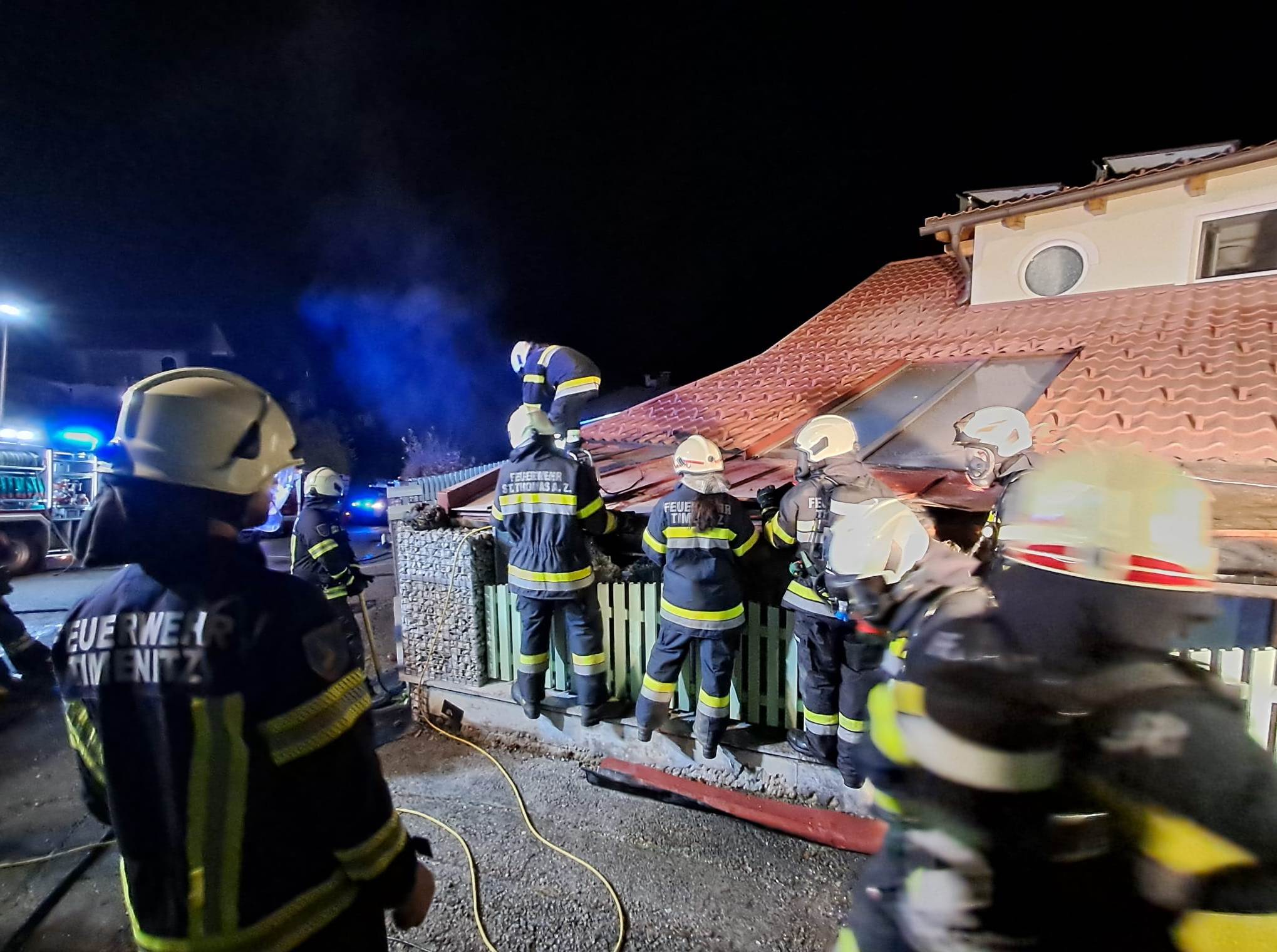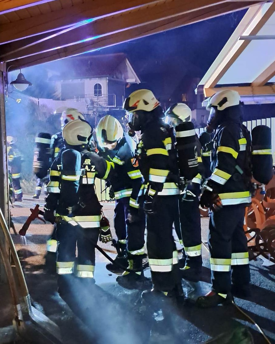 Bei der Ankunft konnte vom Einsatzleiter der FF St. Thomas festgestellt werden, dass es sich um einen Schwelbrand im Bereich des Carports, beziehungsweise eines Abstellraumes handelte. Beißender Geruch und eine starke Rauchentwicklung waren bereits bei der Anfahrt wahrnehmbar. Der Hauseigentümer bemerkte den beißenden Geruch, hielt Nachschau und alarmierte darauf hin unverzüglich den Feuerwehr-Notruf. Diesem Umstand und auch dem raschen Einsatz beider eingesetzten Feuerwehren ist es zu verdanken, dass sich dieser Brand nicht in Richtung des Wohnhauses ausbreitete. Erschwerend für die Feuerwehr kam hinzu, dass eine PV-Anlage mitsamt des Speichersystems direkt vom Brandgeschehen betroffen war. Zum Zeitpunkt des Brandausbruchs waren 6 Erwachsene und ein Kleinkind im Wohnhaus. Das Baby wurde selbstständig ins ELKI Klagenfurt zu einer vorsorglichen Kontrolle gebracht, die zum Glück die Unversehrtheit des Kindes bestätigte. Die Aufgabe der Feuerwehr bestand primär dahin, die Dachhaut des Carports mechanisch zu öffnen und den Brand von außen mit insgesamt zwei eingesetzten Atemschutztrupps zu bekämpfen. Die Feuerwehren St. Thomas am Zeiselberg und Timenitz standen mit insgesamt 4 Fahrzeugen und 39 Mann im Einsatz, um 01:30 Uhr konnten die letzten Kräfte einrücken.