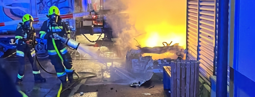 Der Zug erfasste das Fahrzeug, das in weiterer Folge in Flammen aufging und vollständig ausbrannte. Am Güterzug sowie an der Bahnanlage entstand erheblicher Sachschaden – das genaue Ausmaß ist derzeit noch unklar.