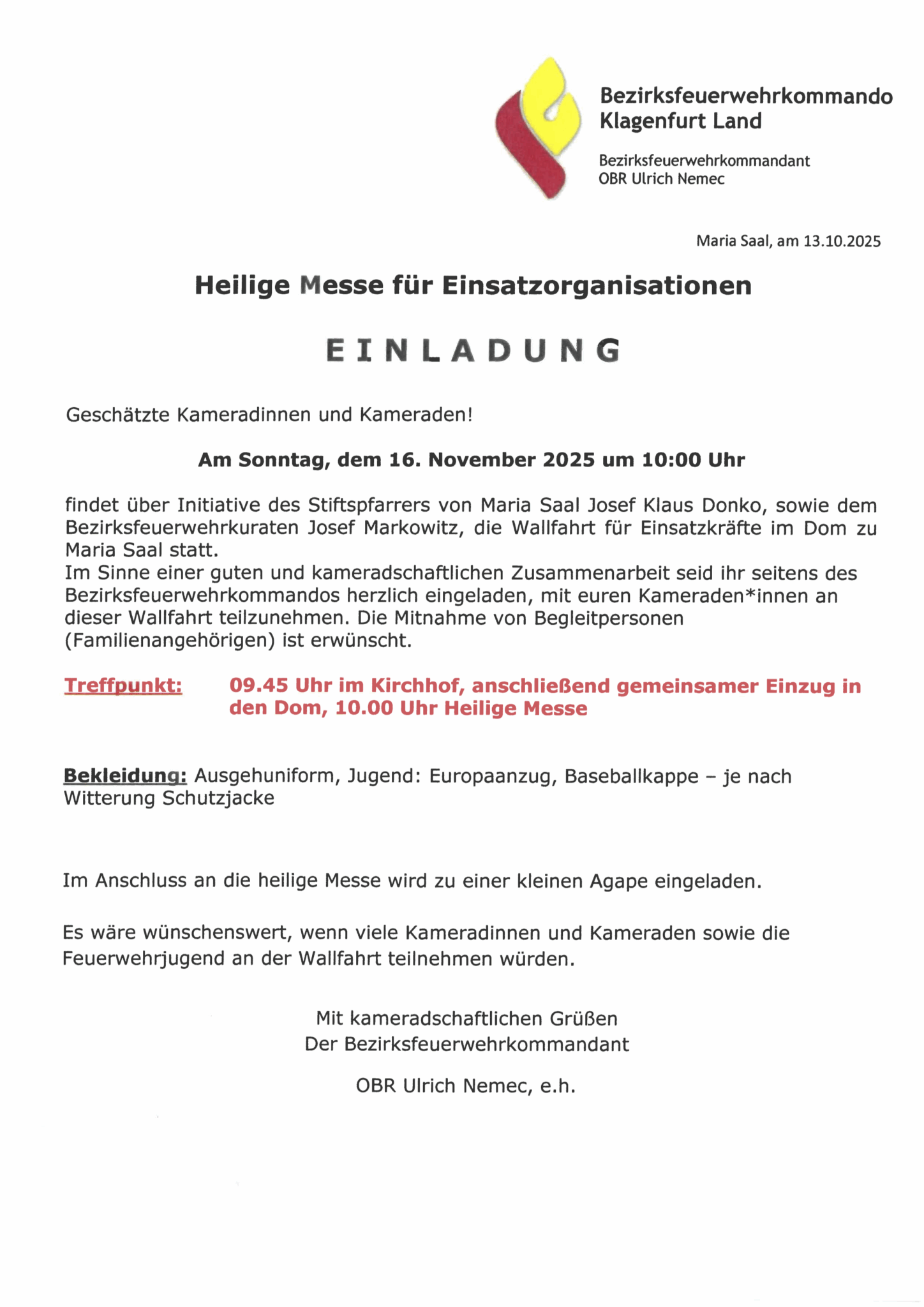 14. Wallfahrt der Einsatzkräfte im Dom zu Maria Saal
